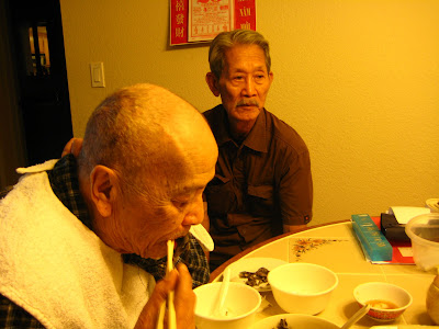 Cô con gái tên Thục mới từ Oklahoma qua thăm và săn sóc bố. Mỗi lần anh khát nước, cô Thục phải nâng giường lên cao, để ống hút vào miệng cho bố hút. Chỉ nhắp một tý thôi đã sặc rồi, con vội vàng hạ giường xuống để bố thở. Cô chăm sóc tận tình, nói năng từ tốn nhẹ nhàng. Cô cũng cho biết chiều hôm qua mẹ có ở đây với ba, đút súp cho ba ăn làm cho cơn đau của ba dịu đi.
