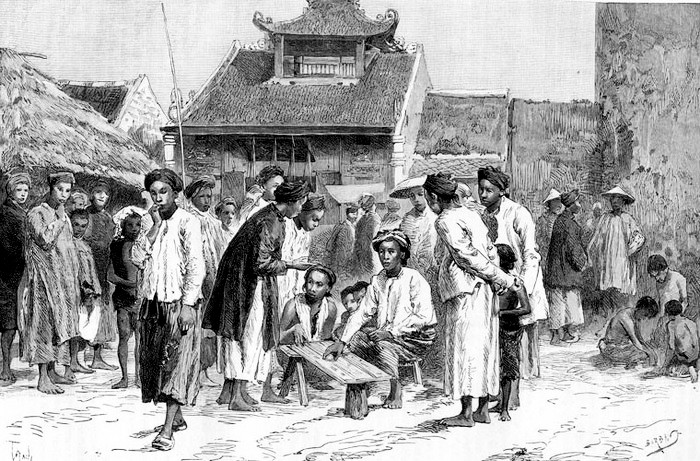 Có tiếng cười reo hò ở phía xa. Nhân quay nhìn bật cười. Cả mấy chục người lớn nhỏ đang đua thuyền. Họ reo hò, hình như để trợ lực cho thuyền của mình. Điệp nhìn chăm chú xuống đám người đua thuyền, bỗng hỏi: