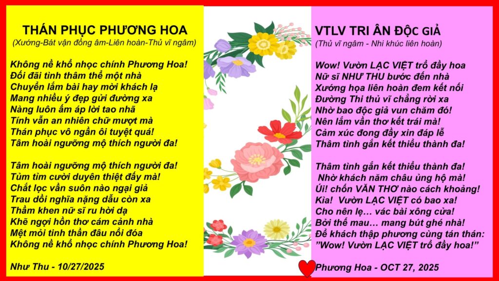 VTLV – THƠ ĐƯỜNG XƯỚNG HỌA – NHƯ THU & THI HỮU.