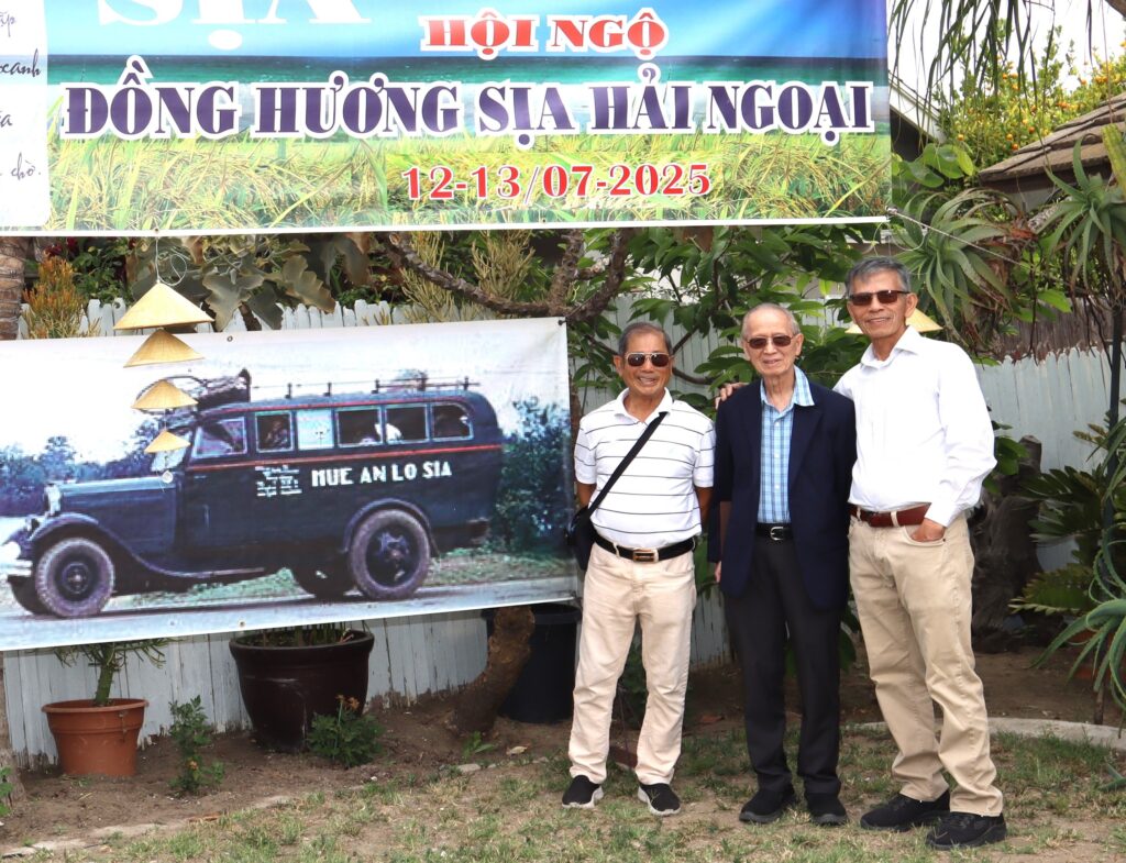 Chú thích hình 3 người từ trái: Một đồng hương, Nhac sĩ Trần Đại Bản và Quang Hà