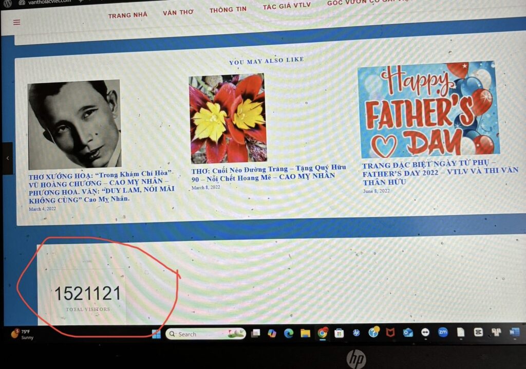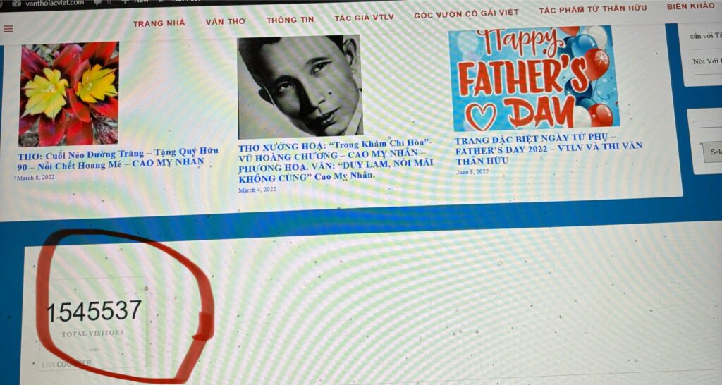 Trang Nhà Văn Thơ Lạc Việt (VTLV) đã chính thức cán mốc hơn 1 TRIỆU view rồi đó ạ! Đó là chút khiêm nhường thôi, con số chính thức trên một triệu rưỡi! (1,545,537)
